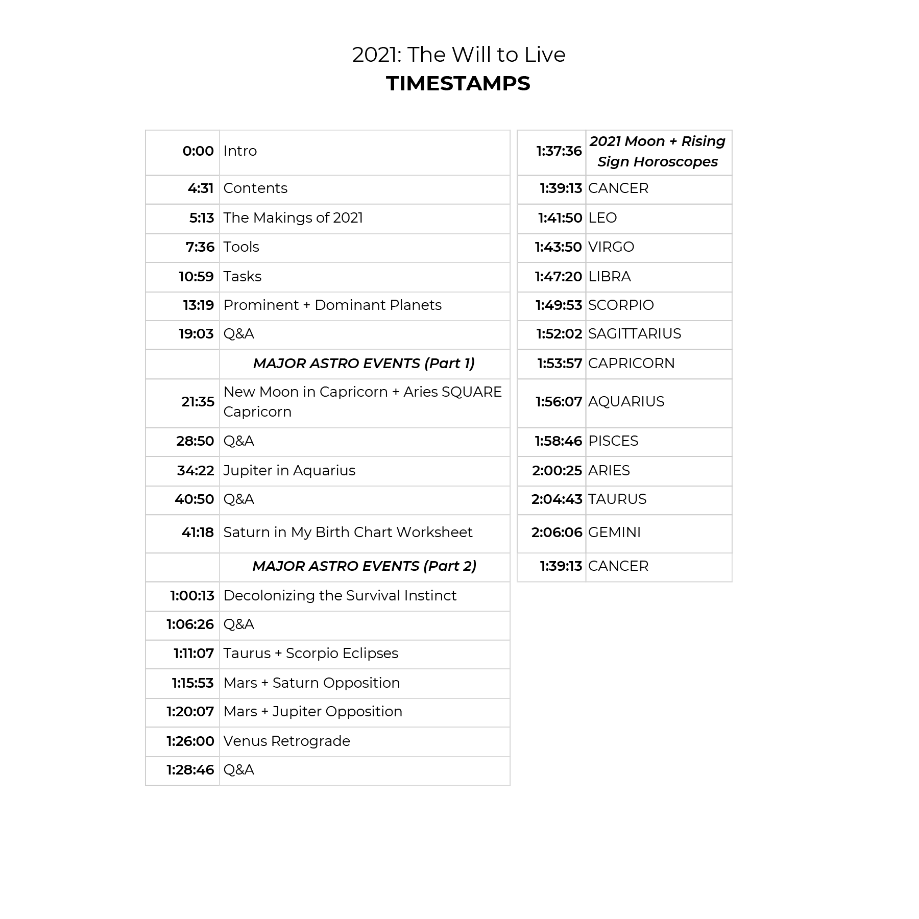 - 120+ minute audio presentation on the astrology of 2021. Major astro events, the significance of the placement of Saturn in your birth chart, horoscopes for each of the 12 sidereal Moon + Risings signs